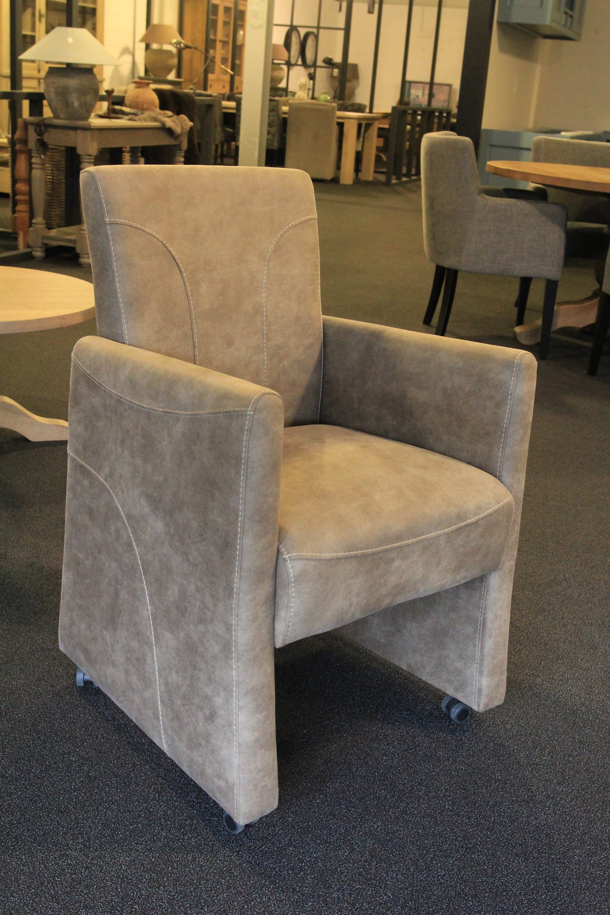 Eetkamerstoel Senna met armleuning en wieltjes.